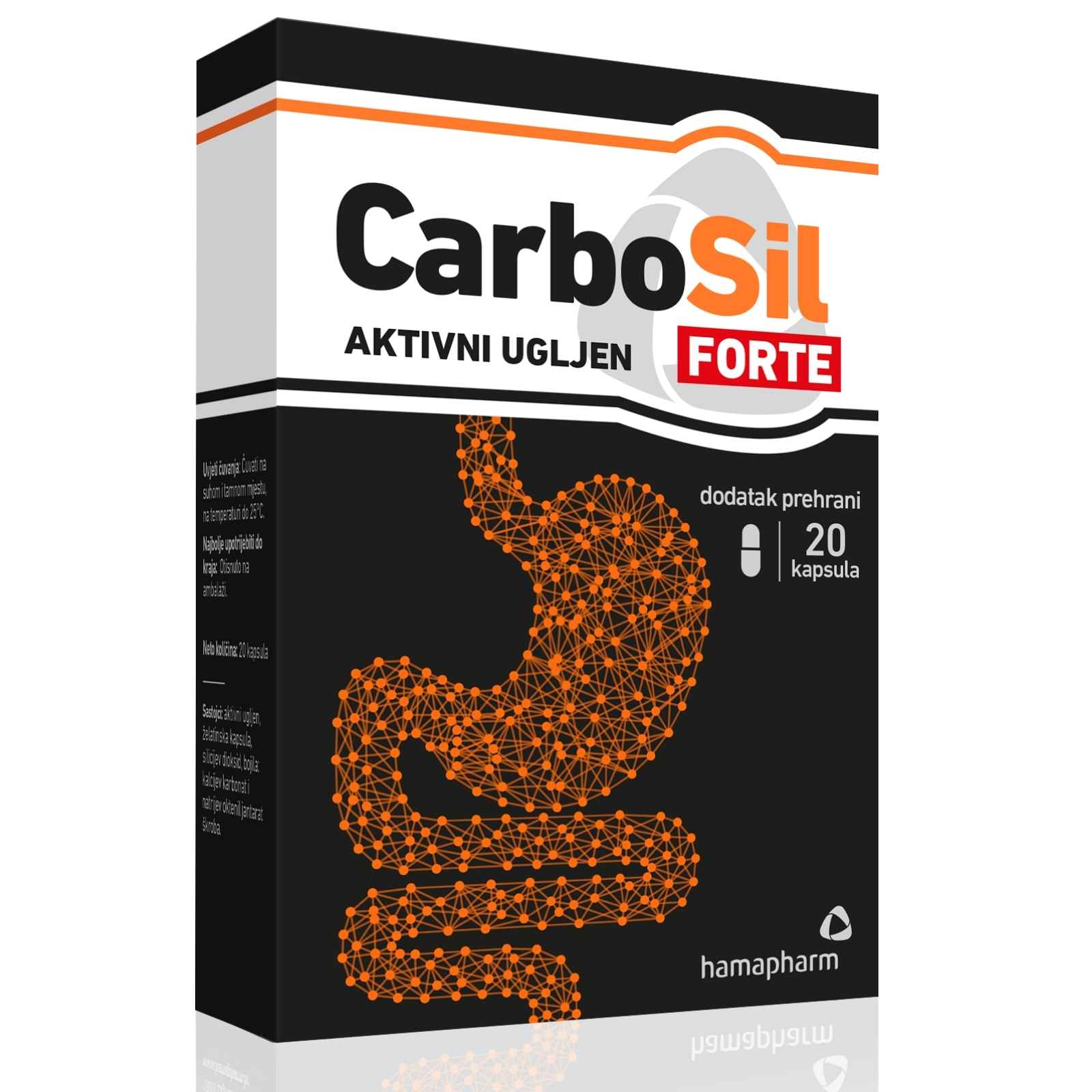 CarboSil FORTE kapsule sadrže 500 mg aktivnog ugljena u jednog kapsuli. Jedinstvena dvostruka kombinacija prirodnih adsorbensa aktivnog ugljena i silicija za: