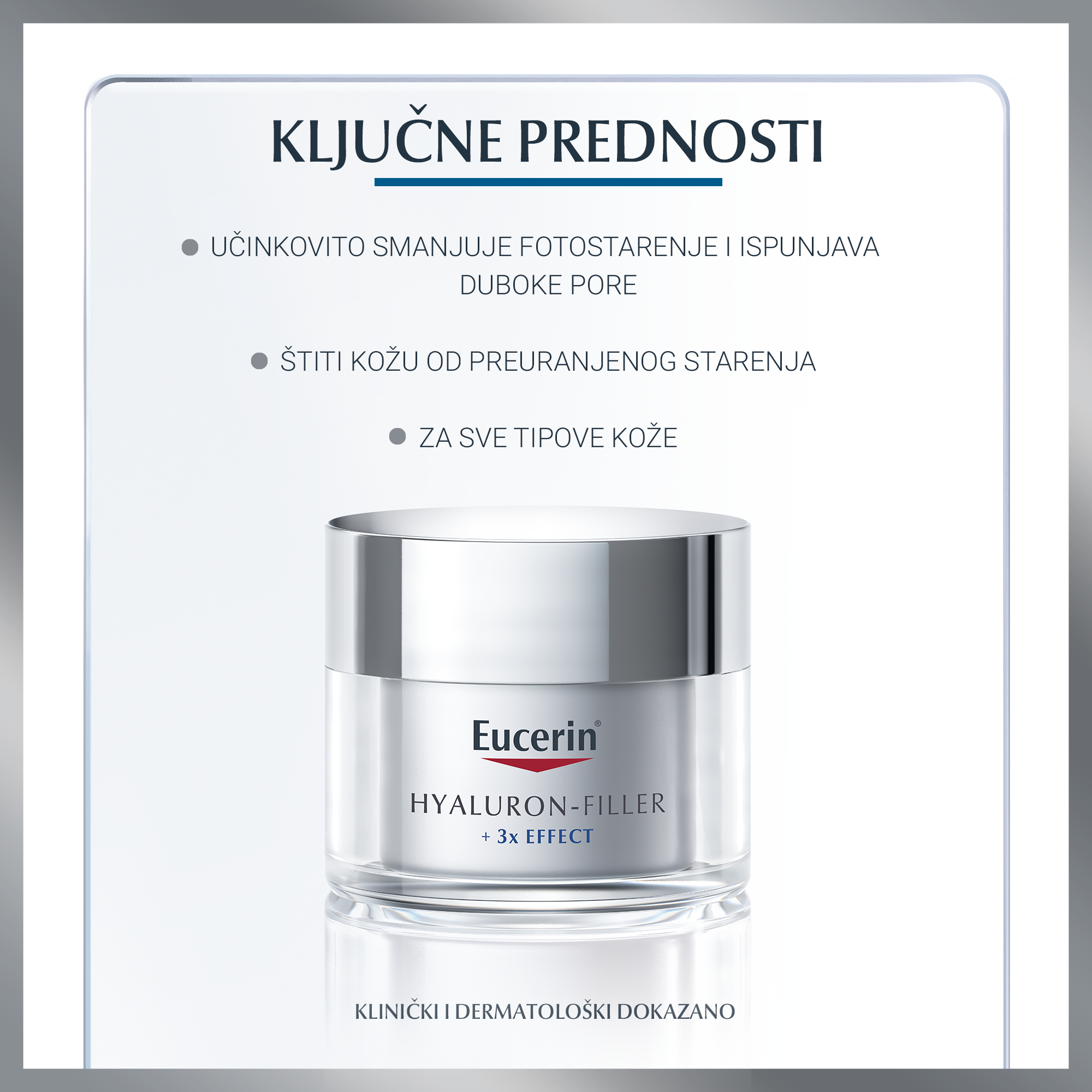 Eucerin Hyaluron-filler dnevna krema za lice sa zaštitnim faktorom 30 djeluje kao anti age krema pružajući učinkovitu njegu protiv bora te koži daje mladenački izgled.
