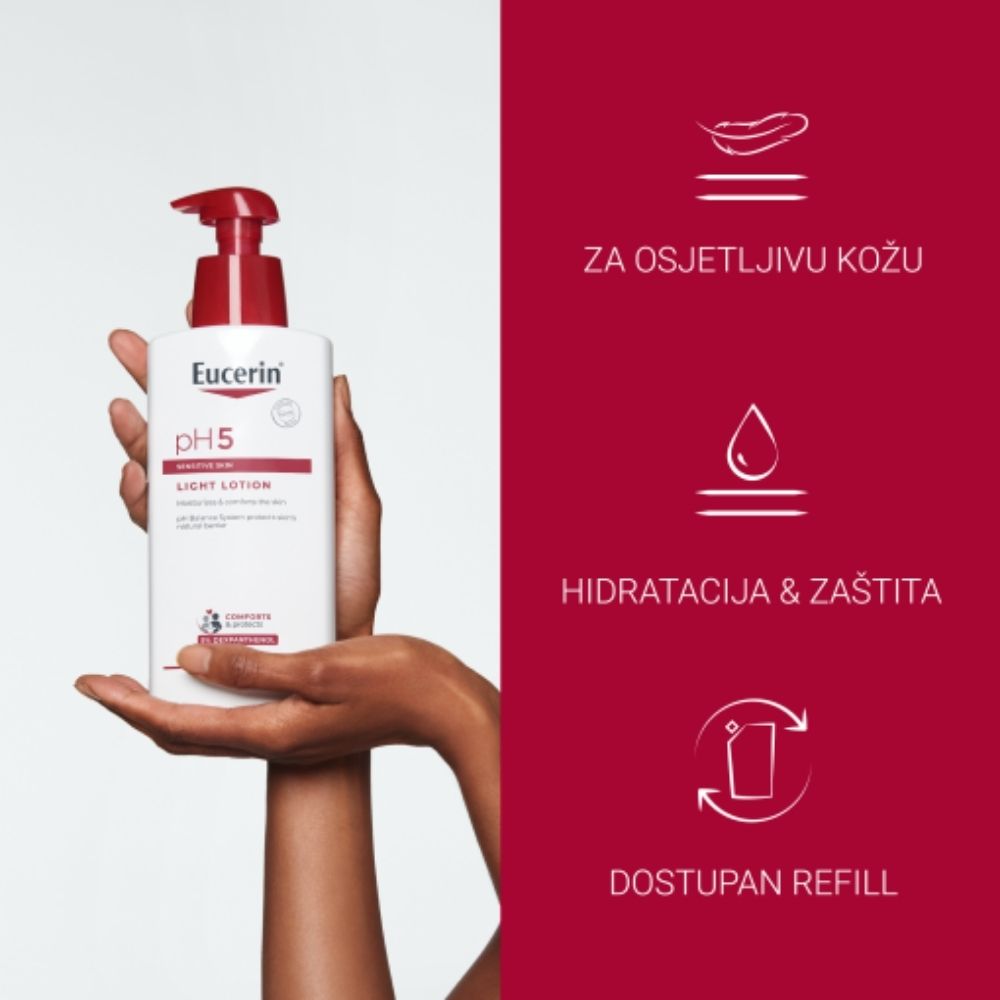 Eucerin pH5 light losion je blago ali učinkovito sredstvo za hidratizaciju posebno stvoreno da suhu i osjetljivu kožu učini otpornijom i manje osjetljivom.