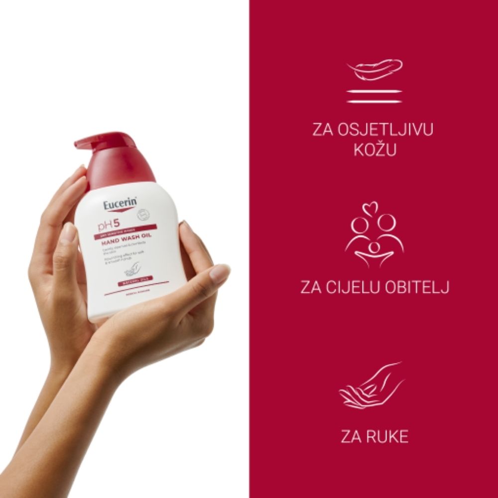 Eucerin PH5 uljno sredstvo za pranje ruku posebno je formulirano s ekstra blagim površinski aktivnim sredstvima koja čiste suhe, osjetljive ruke bez isušivanja.