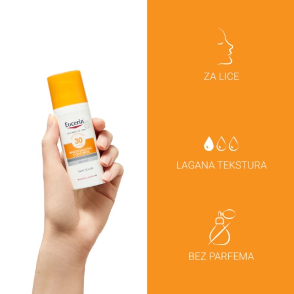 Eucerin fluid za zaštitu od sunca i sprečavanje fotostarenja SPF 30 je svakodnevna zaštita od sunca za sve tipove kože lica.