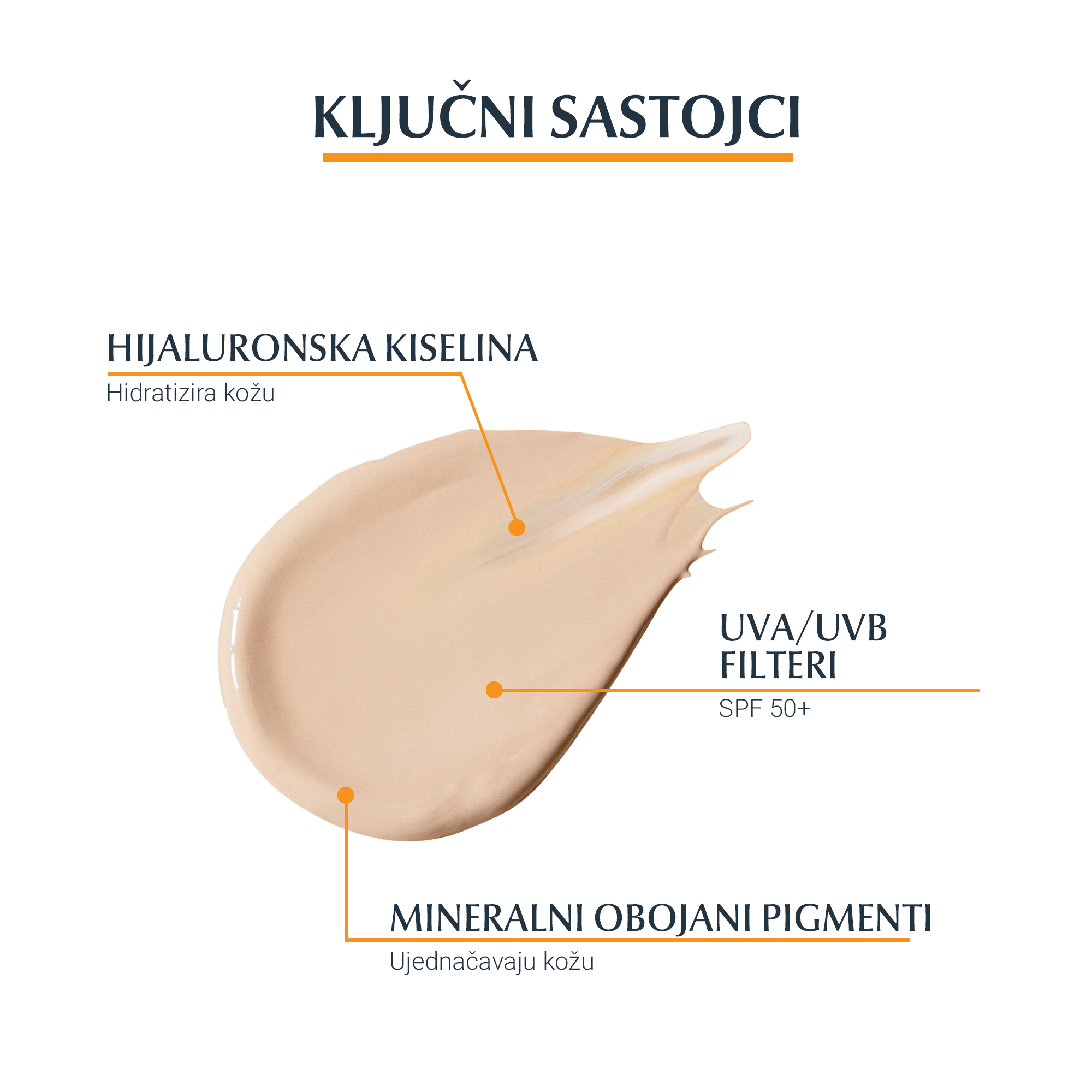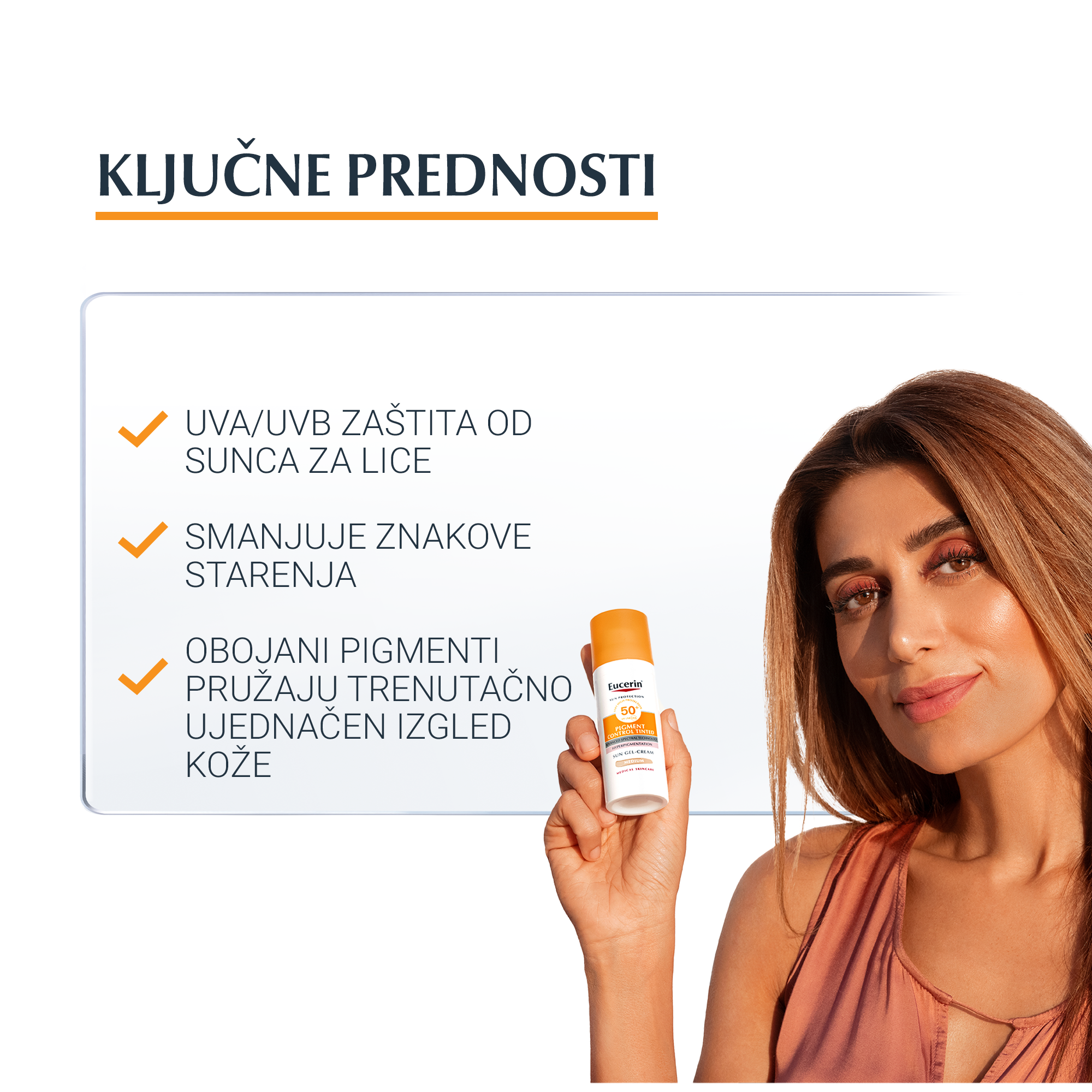 Pouzdana krema za sunčanje za lice za sve tipove kože s obojenim pigmentima za ujednačen izgled kože.