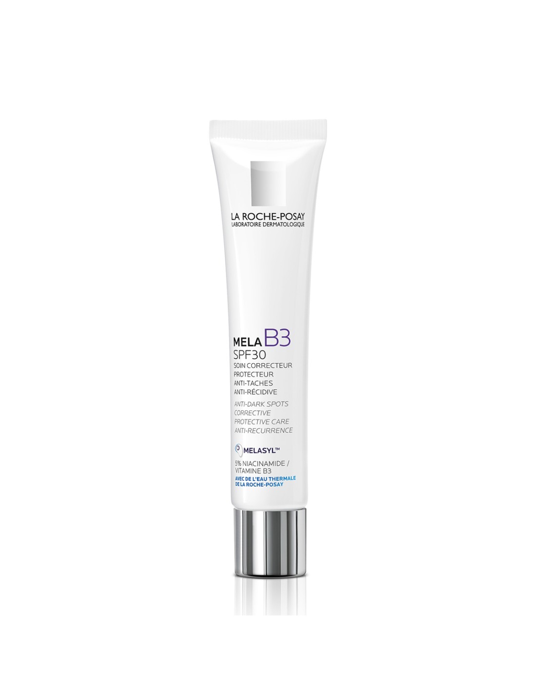 La Roche-Posay Mela B3 SPF30 korektivna zaštitna njega protiv tamnih mrlja i njihovog ponovnog pojavljivanja osmišljena je za svakodnevnu njegu kože s hiperpigmentacijskim mrljama, neujednačenim tenom i sklonošću ponovnoj pojavi tamnih mrlja. Formula je razvijena kako bi klinički dokazano korigirala tamne mrlje, a istovremeno pružila SPF 30 i UVA zaštitu pri svakodnevnoj izloženosti suncu.