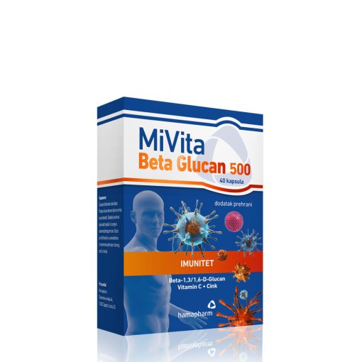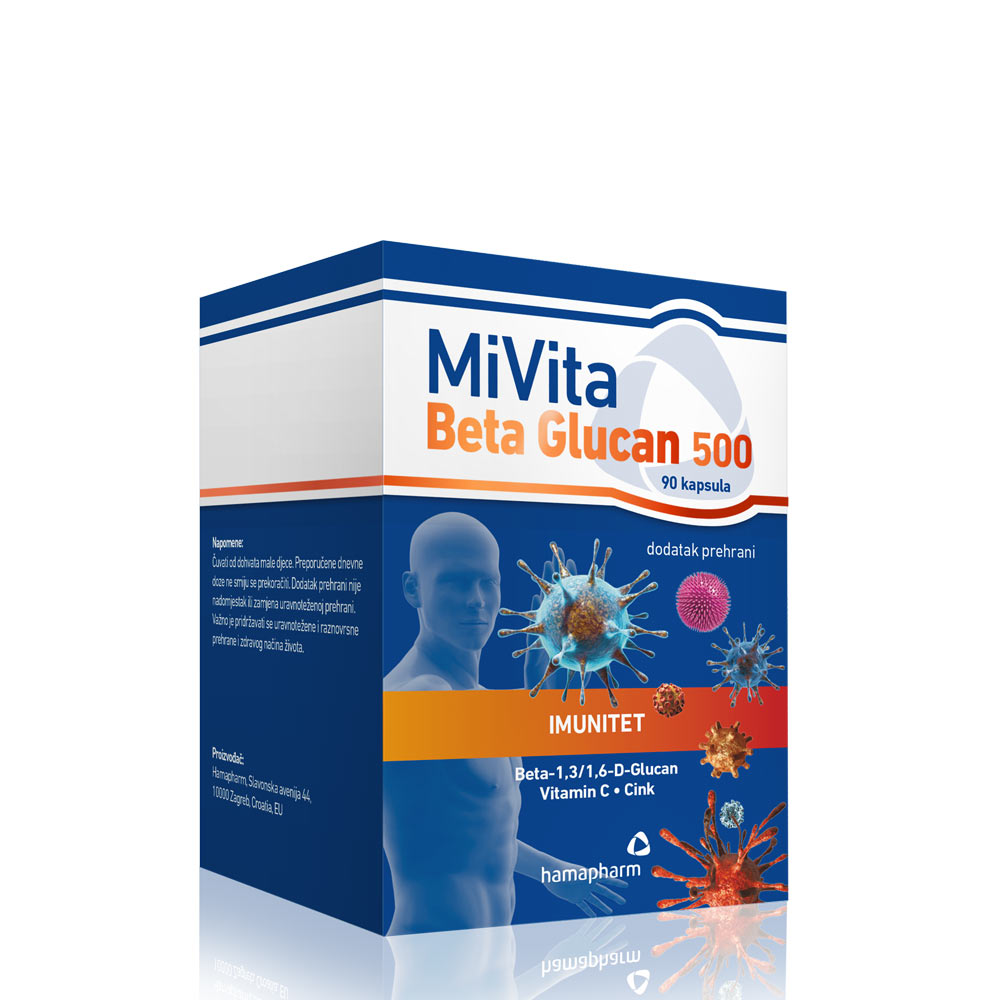 MiVita Beta Glucan 500 kapsule za jačanje imuniteta sa beta glukanom, vitaminom C i cinkom. Sinergijsko djelovanje 3 djelatne komponente doprinosi većoj učinkovitosti u odnosu na svaki element zasebno.