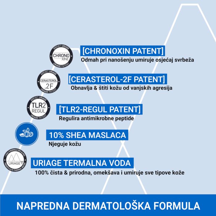 Dodatak Uriage termalne vode pridonosi umirivanju i dubinskoj hidrataciji suhe kože te zaštiti od isušivanja.